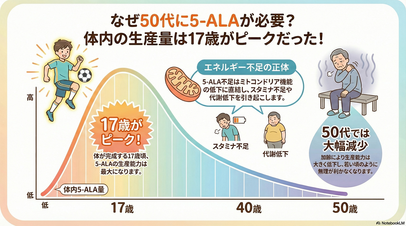 なぜ50代に5-ALAが必要なのか?(17歳がピークの衝撃)