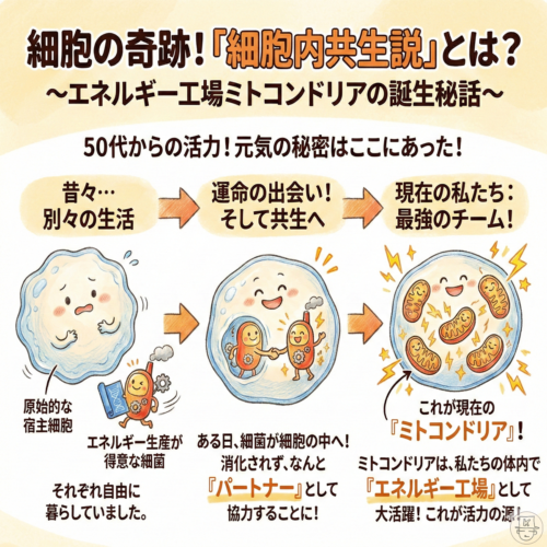 それからおよそ50年。50代からの健康戦略を真剣に模索し、最新の科学やサプリメントを学ぶ中で、私はこのミトコンドリアの「本当のすごさ」に圧倒され、改めて深い感銘を受けたのです。